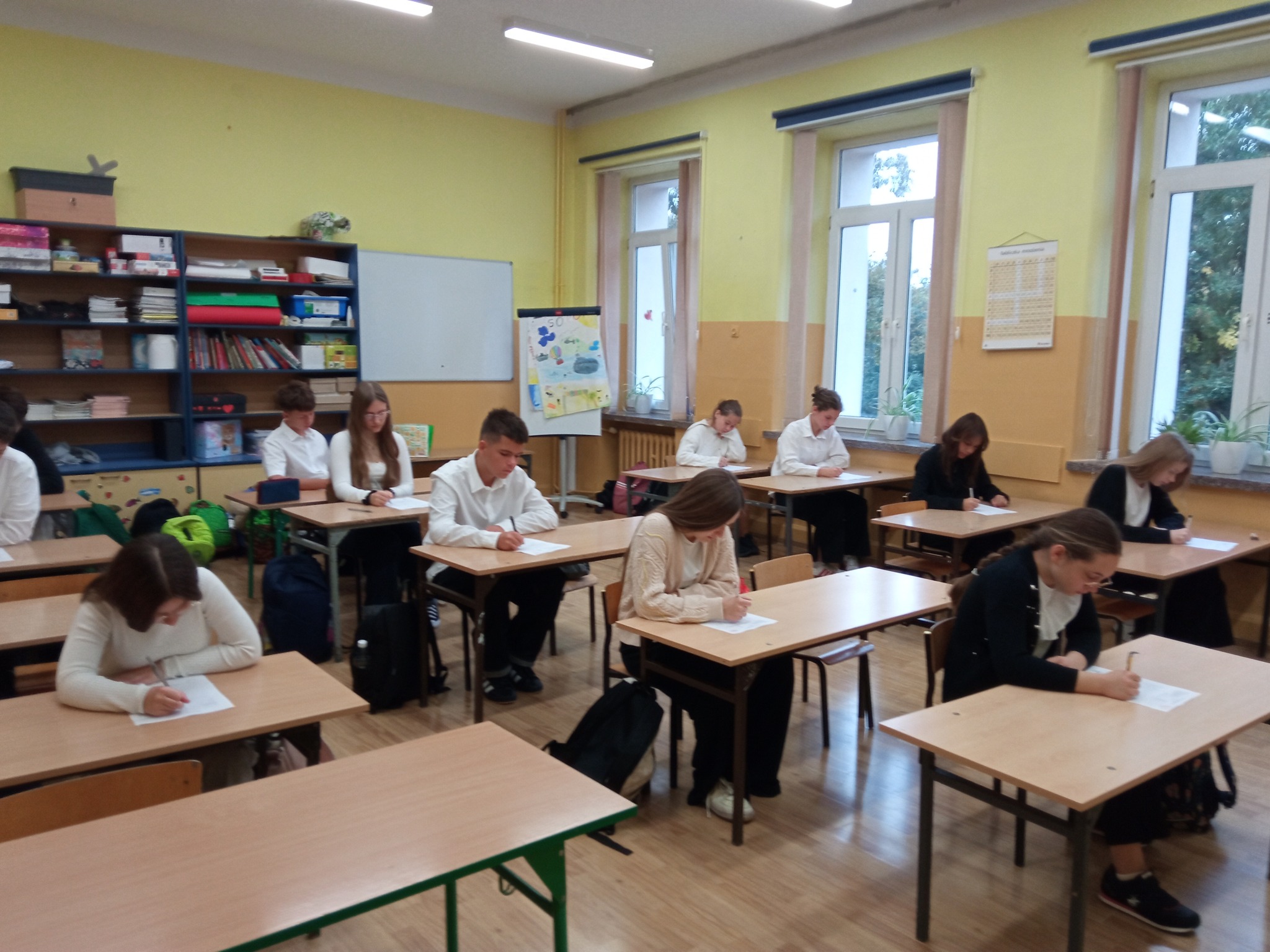 Uczniowie klas 4–8 naszej szkoły wzięli udział w XIII edycji Ogólnopolskiego Dyktanda Niepodległościowego „Po polsku o historii”. Konkurs, który odbył się 26 września, połączył znajomość zasad ortografii i interpunkcji z wiedzą historyczną oraz refleksją nad polską niepodległością. Była to doskonała okazja do kształtowania postaw patriotycznych oraz rozwijania umiejętności poprawnego pisania w języku polskim.