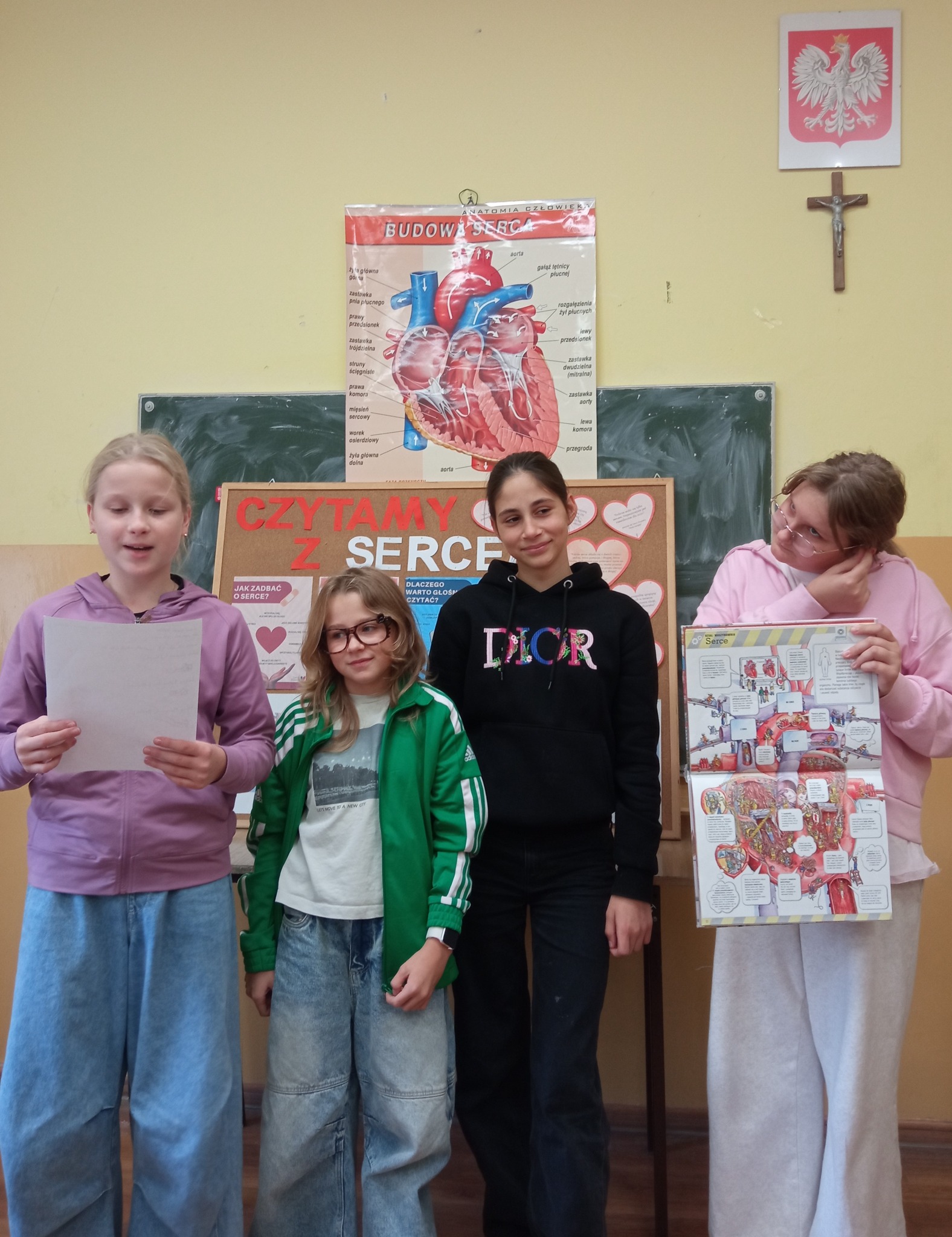 Uczniowie naszej szkoły uczestniczyli w V edycji Ogólnopolskiej Akcji Czytelniczej "Czytamy z Sercem". Na podstawie książki R. Jędrzejewskiej Wróbel pt. "Pracownia Aurory" uczniowie rozmawiali o konieczności dbania o własne emocje, próbowali "wystawić recepty" i narysować preparat poprawiający samopoczucie, czytali z podziałem na role scenki dotyczące profilaktyki chorób serca.