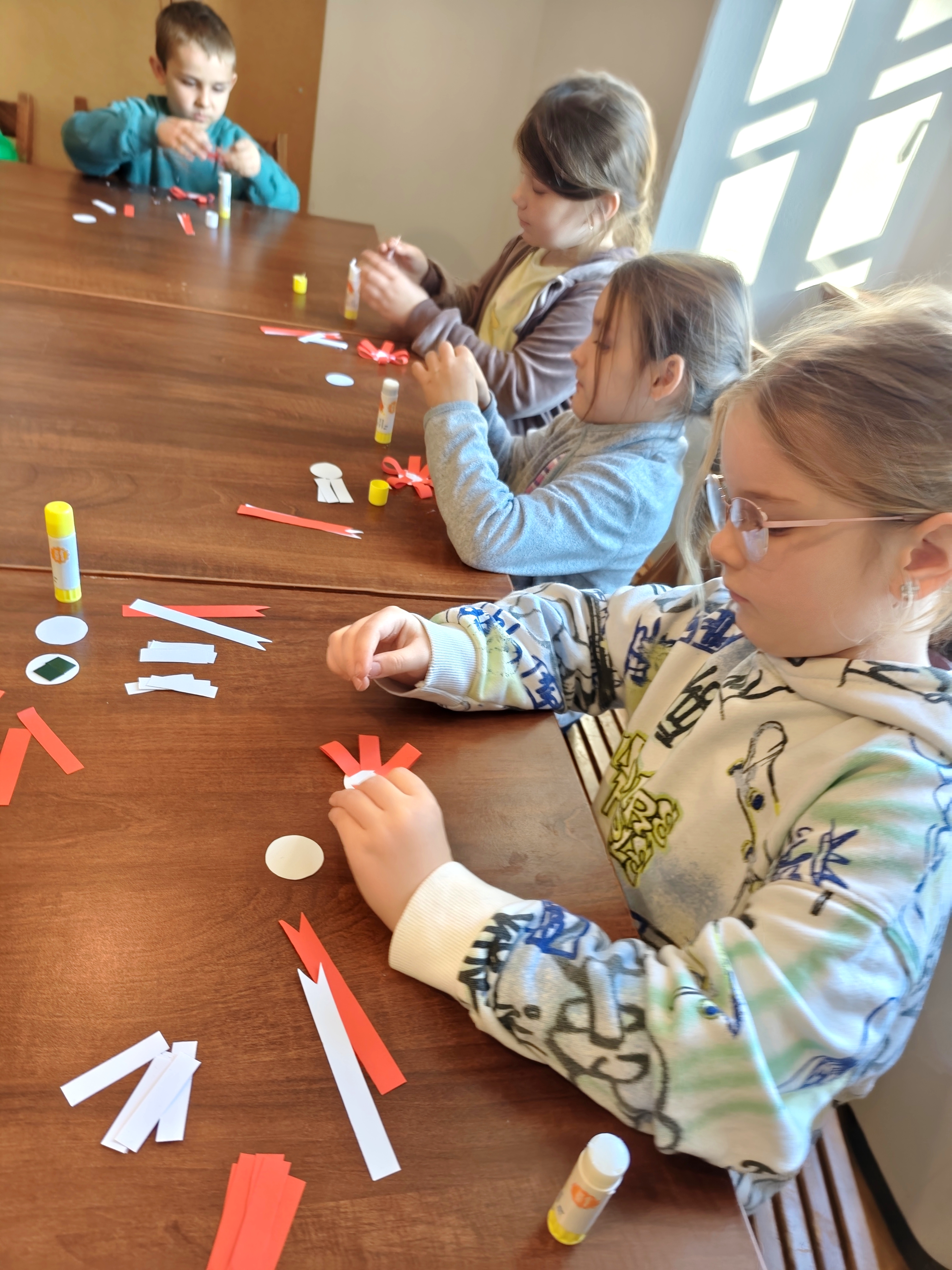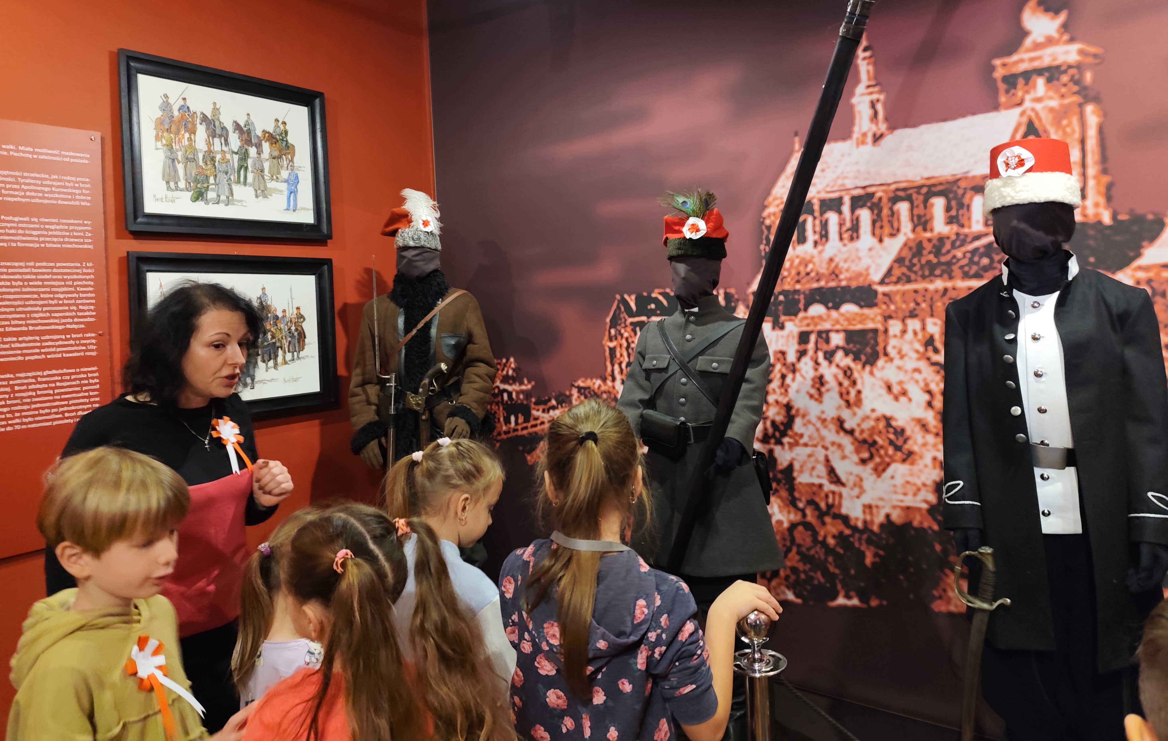 Uczniowie klasy 1b uczestniczyli w warsztatach w Muzeum Ziemi Miechowskiej podczas których wykonali kotyliony w barwach narodowych oraz zdobyli wiedzę o okolicznościach odzyskania niepodległości przez Polskę. Na koniec uczniowie mieli okazję podziwiać historyczną wystawę Muzeum Ziemi Miechowskiej.