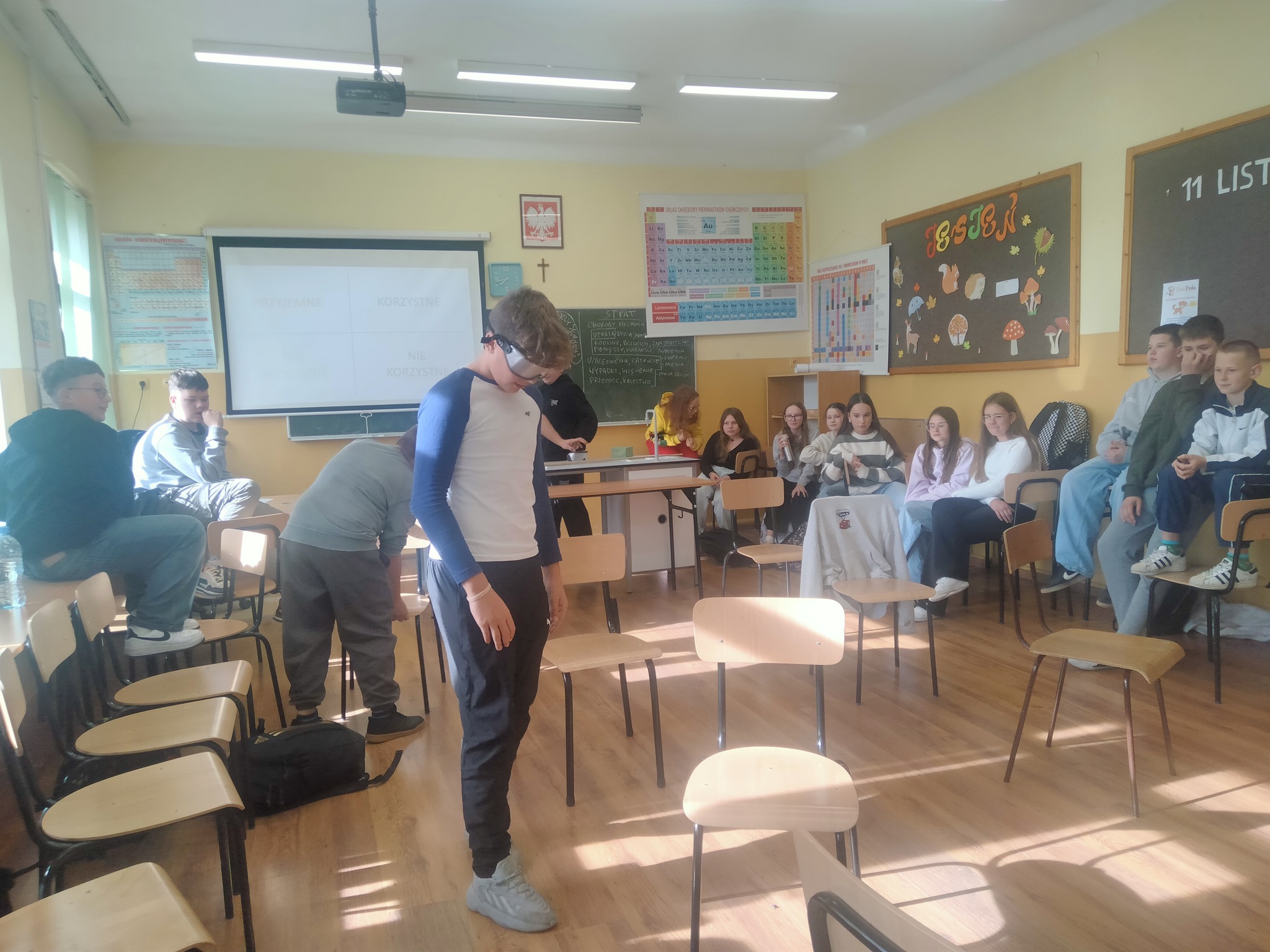 W dniu 22.10.2025r. uczniowie klasy 6a wzięli udział w warsztatach programu profilaktyczno - edukacyjnego DEBATA realizowanego przez Centrum Profilaktyki Nowe Horyzonty. Główne cele programu to: wzmacnianie postaw pro-abstynenckich, opóźnienie inicjacji alkoholowej, zwiększenie wiedzy o alternatywnych możliwościach rozwoju bez używek, promocja zdrowego stylu życia oraz wzmacnianie asertywności. Uczniowie mieli możliwość pokonać tor przeszkód w alkogoglach, chętnie i zaangażowaniem brali udział w zajęciach.