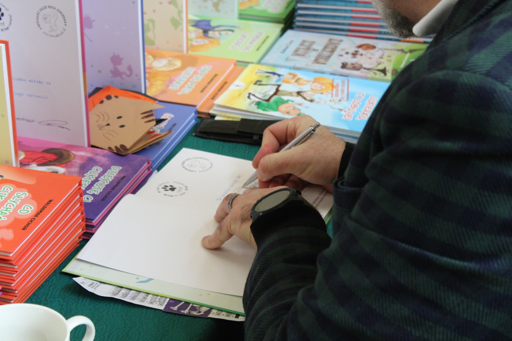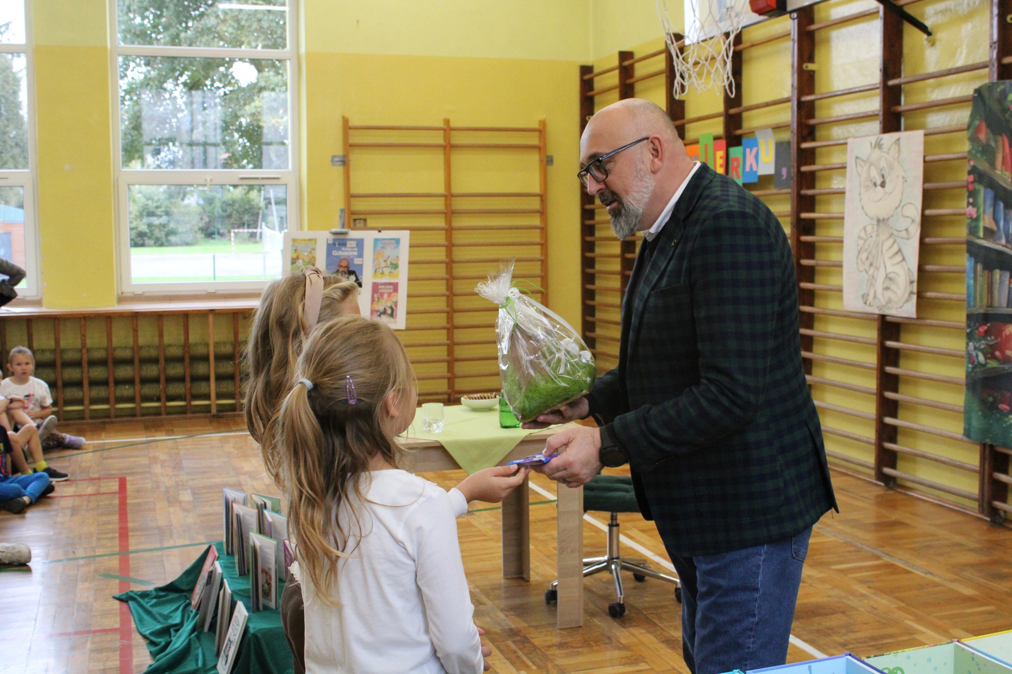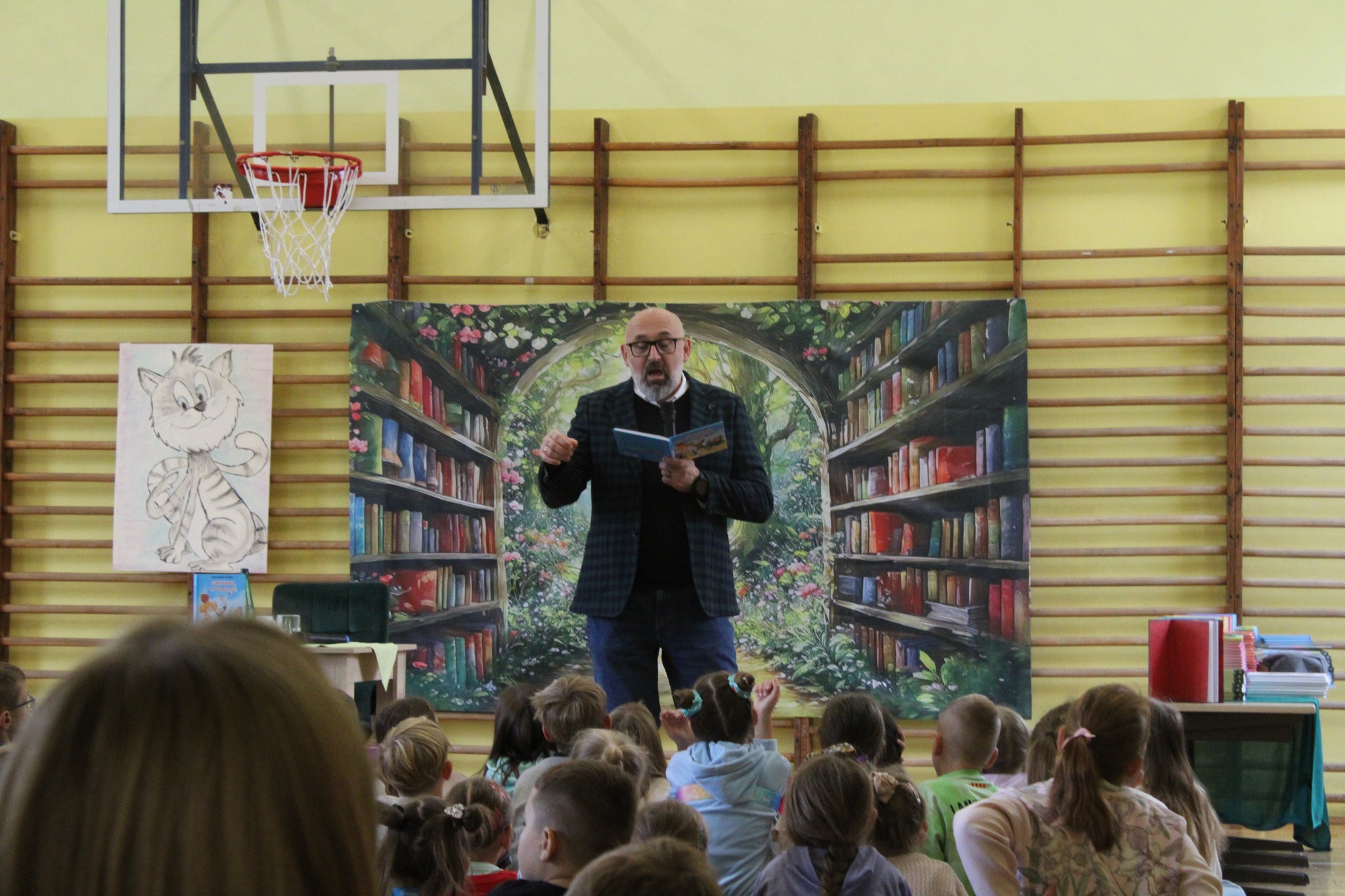 6 października br. w naszej szkole odbyło się spotkanie autorskie z Waldemarem Cichoniem – pisarzem, autorem książek dla dzieci, autorem znanego cyklu o kocie Cukierku, którego pierwsza część pt. „Cukierku, ty Łobuzie!”, została rekomendowana przez Ministerstwo Edukacji Narodowej jako lektura szkolna. Spotkanie dedykowane dla uczniów klas 0-3, zrealizowane było w ramach inicjatywy lokalnej „Nakręcanie na Czytanie”.