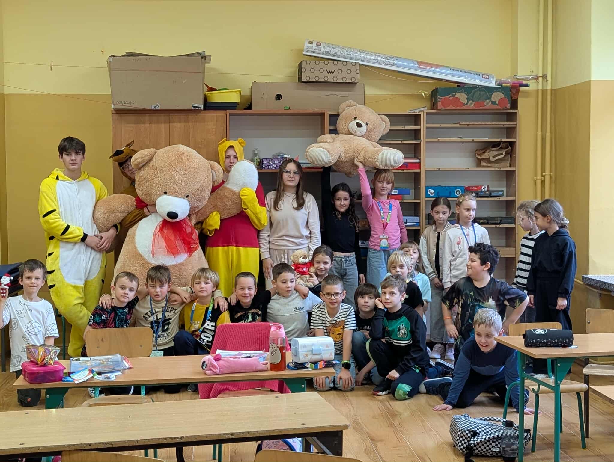 25 listopada obchodzony jest Dzień Pluszowego Misia. Na uczniów klas 0- 3 czekały niespodzianki: Misiowe podchody- poszukiwanie zaginionych postaci z bajek, misiowe zagadki, taniec, słodkie jak miód cukierki oraz lektura najbardziej misiowej pozycji czyli "Kubusia Puchatka" A. A. Milne. Dzieci bawiły się wraz ze starszymi kolegami z zaprzyjaźnionego Liceum Ogólnokształcącego